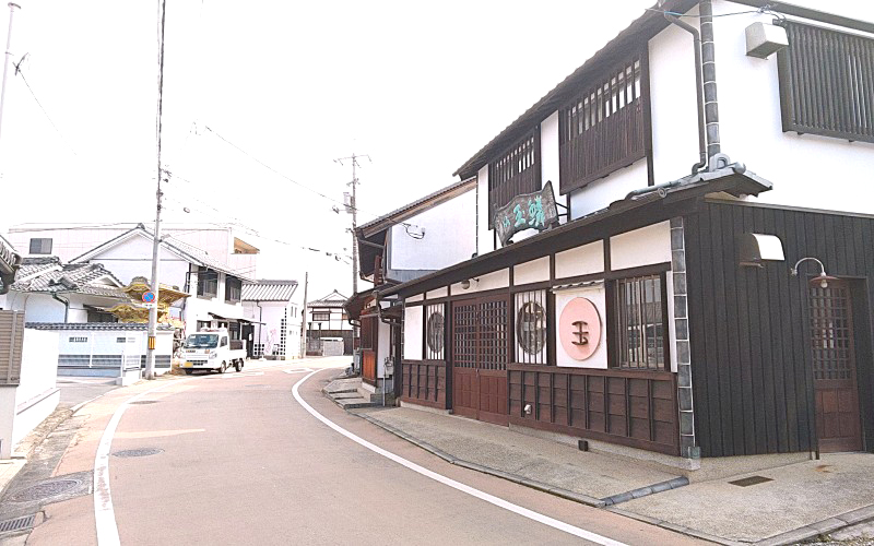 仲買町の町並み。左手が大正8年(1919)創業の「玉島味噌醤油合資会社」