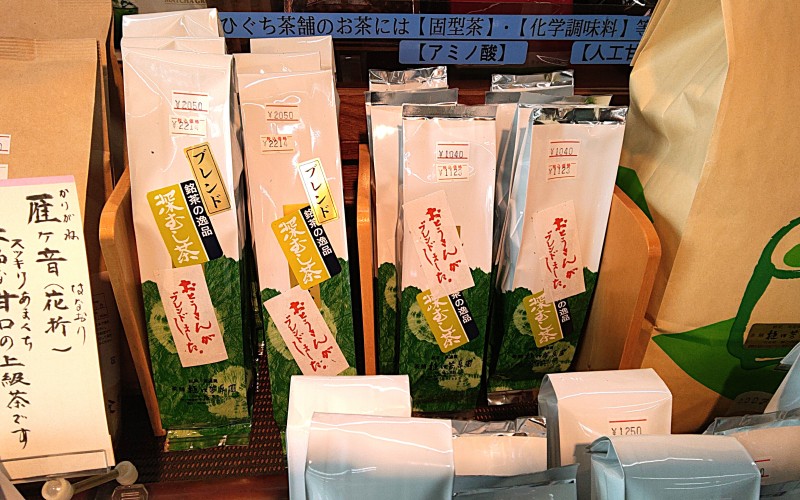 お抹茶をはじめお煎茶・玄米茶などの緑茶やお茶に合うスイーツを販売するお茶屋さん「樋口芳泉園茶舗」で、休憩がてら美味しいお茶選びを。店主・樋口清治さんおすすめの深むし茶「おとうさんブレンド」を購入しました。