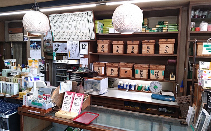 店内にはお抹茶の各種銘柄もずらりと並んでいます。