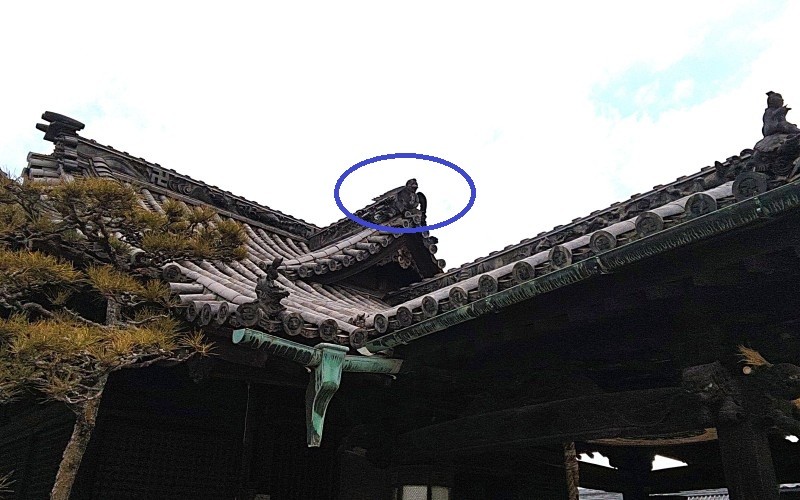 拝殿の瓦には、からす天狗が鎮座し、玉島を見守っています。