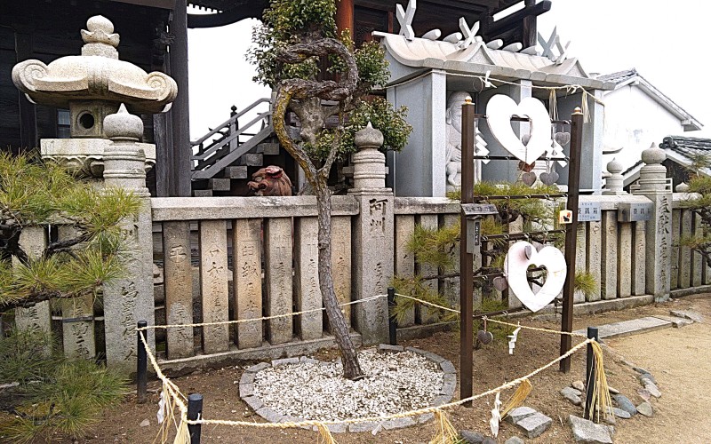 本殿東側には「むすびの松」と呼ばれる左右の枝が結ばれた松があり、「縁結びにご利益がある」と評判で、メディアにも取り上げられました。