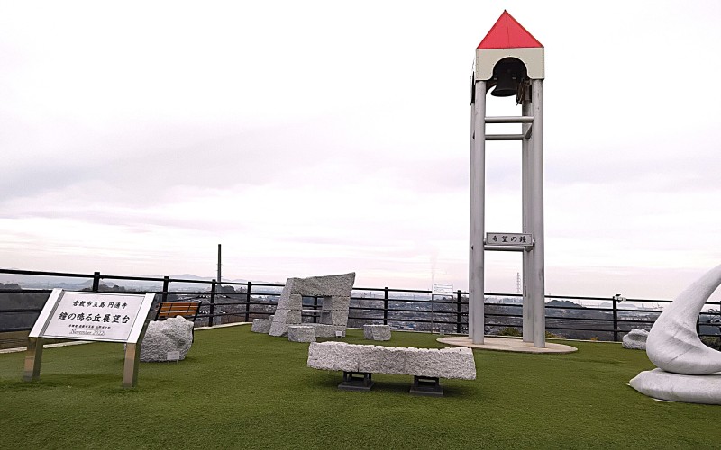 「鐘のなる丘展望台」。中央には「希望の鐘」の塔が建っています。