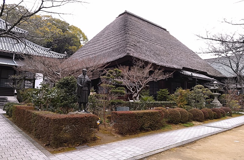 堂々とした風格を持つ本堂と若き日の良寛の立像。