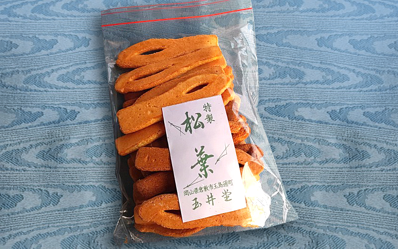 創業当時から変わらない味「松葉せんべい」。小麦粉、卵、砂糖というシンプルな素材で香ばしく焼き上げられる“和風クッキー”は、松葉の形に仕立てた見た目も愛らしく、ポリポリ、サクサクした食感と「ひとつ、またひとつ」と思わず手が伸びて止まらなくなる絶妙な軽さが魅力。93歳の我が母も「これは止まらんようになるなあ」と10数本を一気に平らげておりました。