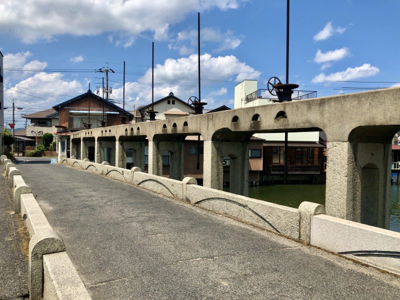 映画「とんび」ロケ地のドラム缶の浮橋。
